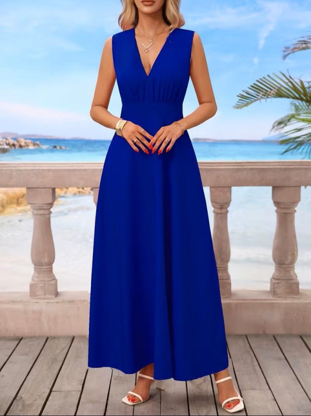 Kadın Askılı V Yakalı Bel Korsaj Detaylı Uzun Ithal Krep Elbise