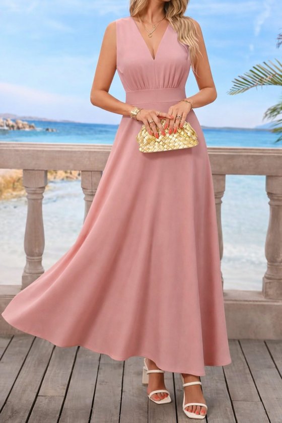 Kadın Askılı V Yakalı Bel Korsaj Detaylı Uzun Ithal Krep Elbise