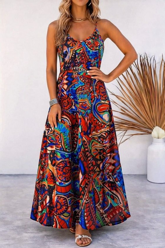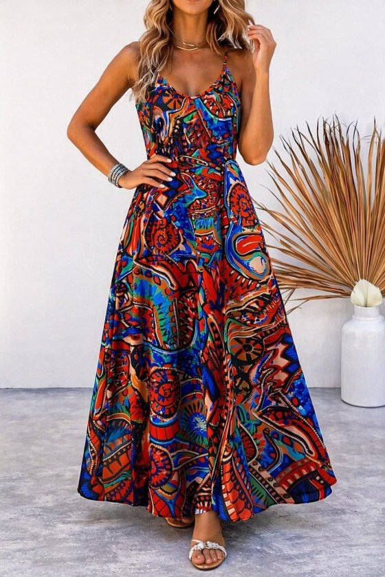 “Kadın Askılı V Yakalı Desenli Uzun Süprem Elbise” için ilk yorum yapan siz olun