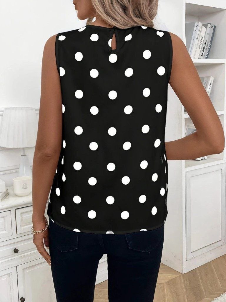 Kadın Zarif Dokunuş Askılı Yakası Büzgülü Puantiyeli Atlas Bluz
