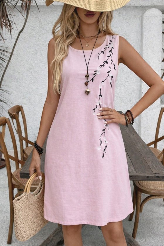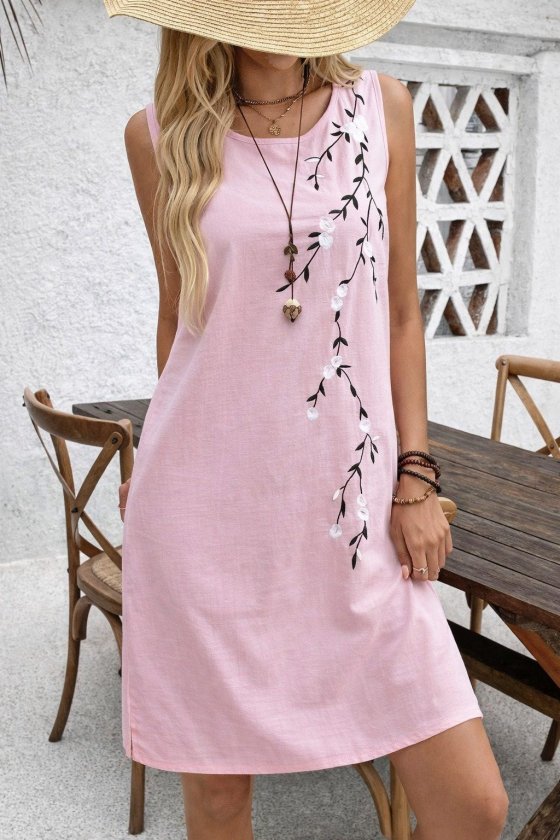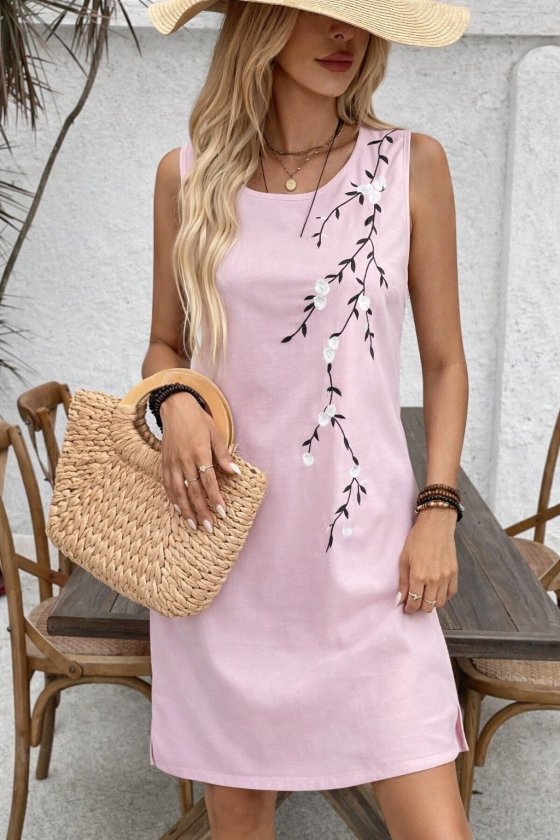 çiçek Desenli Kadın Zarif Duruş Askılı Yuvarlak Yakalı Kısa Elbise