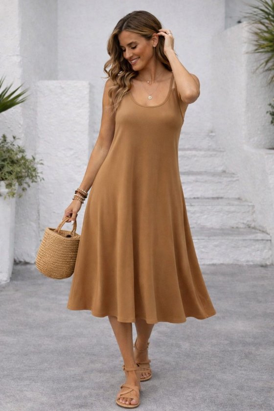 Kadın Askılı Yuvarlak Yakalı Kiloş Uzun Viskon Elbise