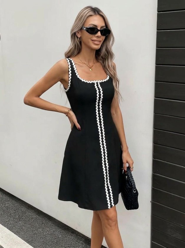 Kadın Askılı Yuvarlak Yakalı şerit Desenli Kısa Kiloş Elbise