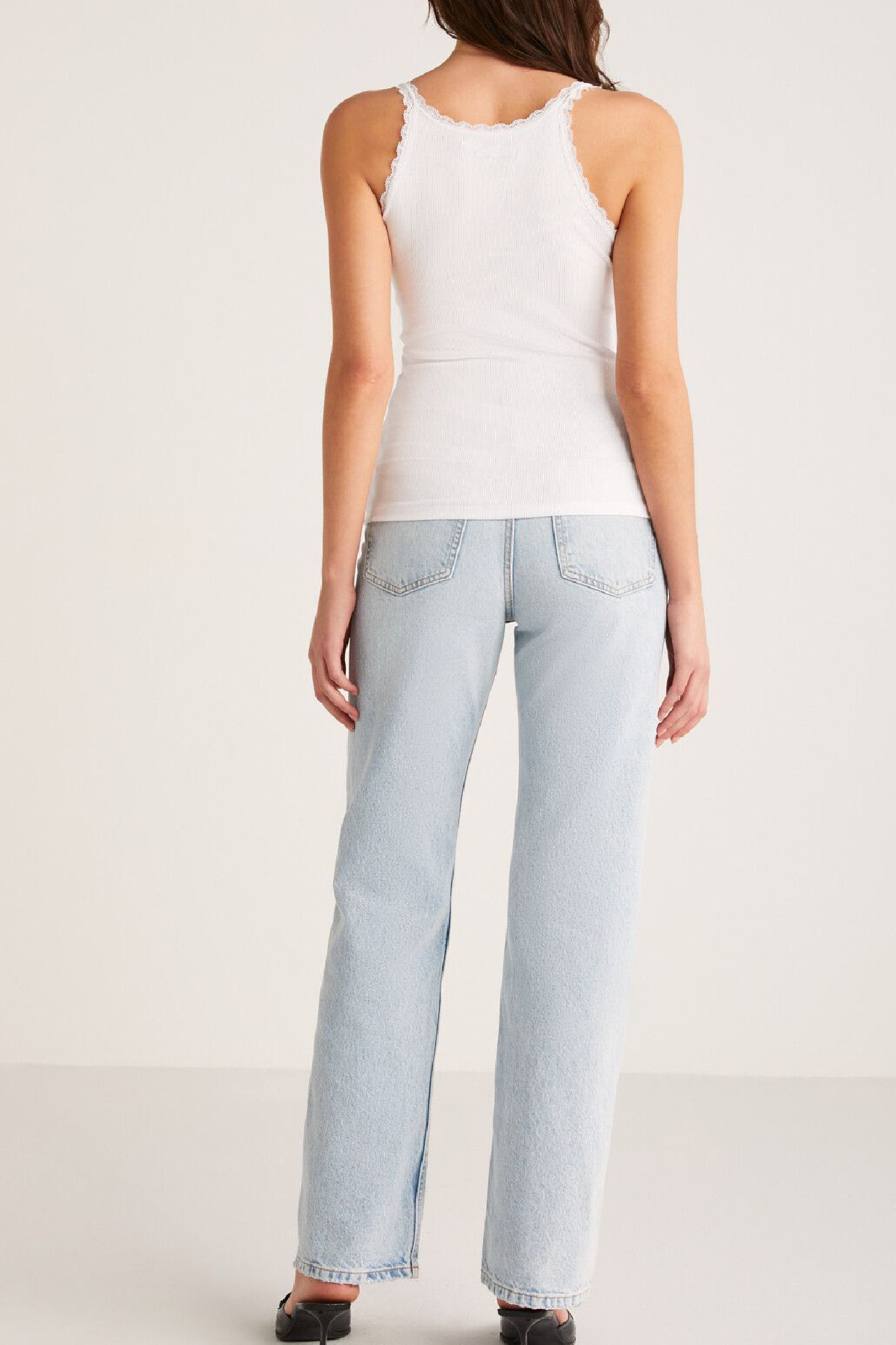 Kadın Rahat Kullanım Beyaz Normal Kalıp Dantel Detalı Ince Askılı Oyuk Yaka Atlet
