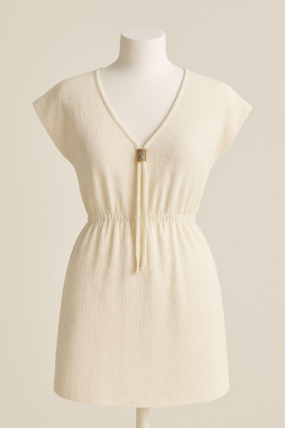 Plaj modasına şıklık katmak isteyen kadınların tercih edebileceği bu beyaz mini elbise, sade ama etkileyici tasarımıyla gardırobunuzun favorisi olmaya aday.