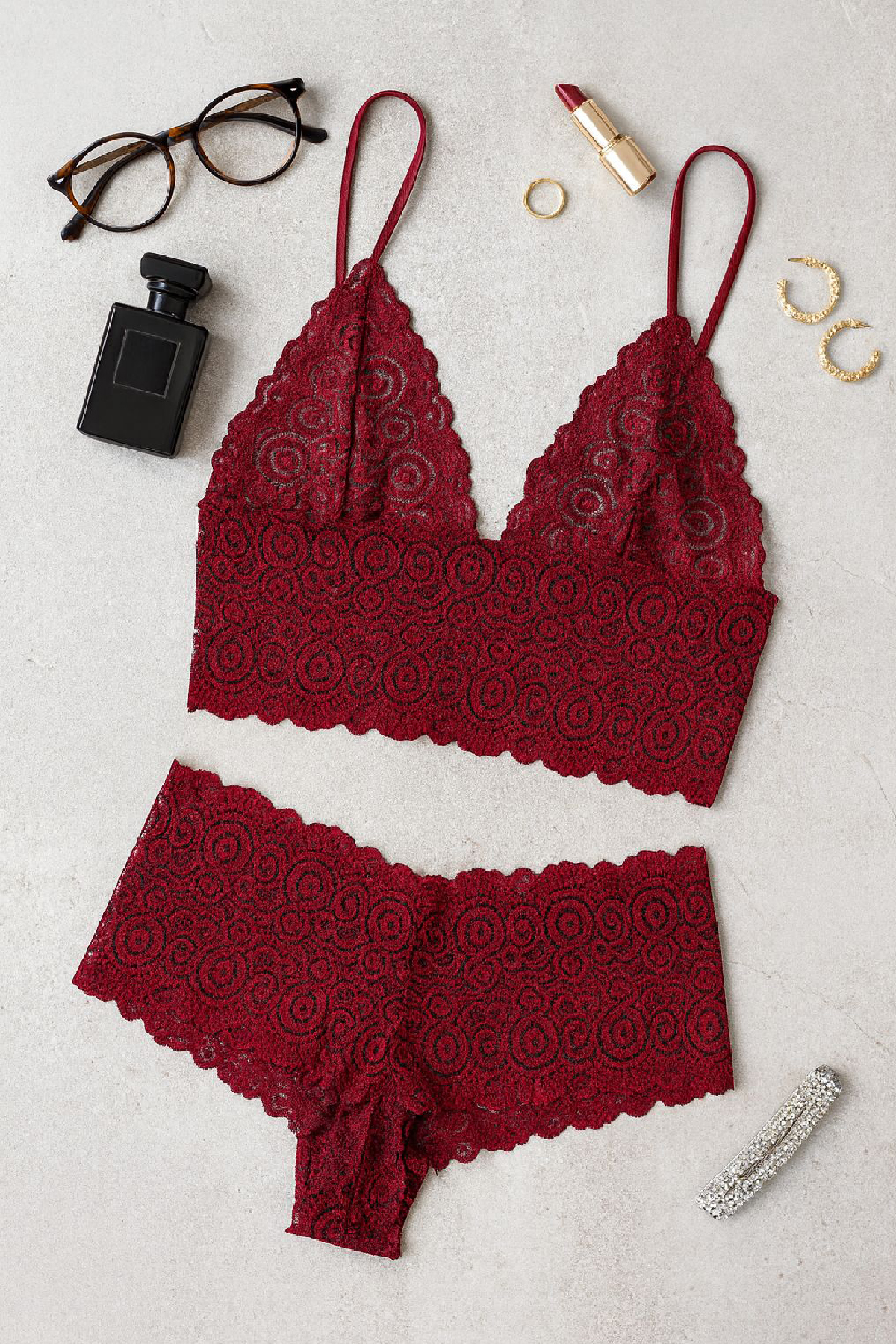 Kadın Rahat Kullanım Bordo Dantel Bralet ı – Asil ve Sofistike İç Giyim Şort Takım