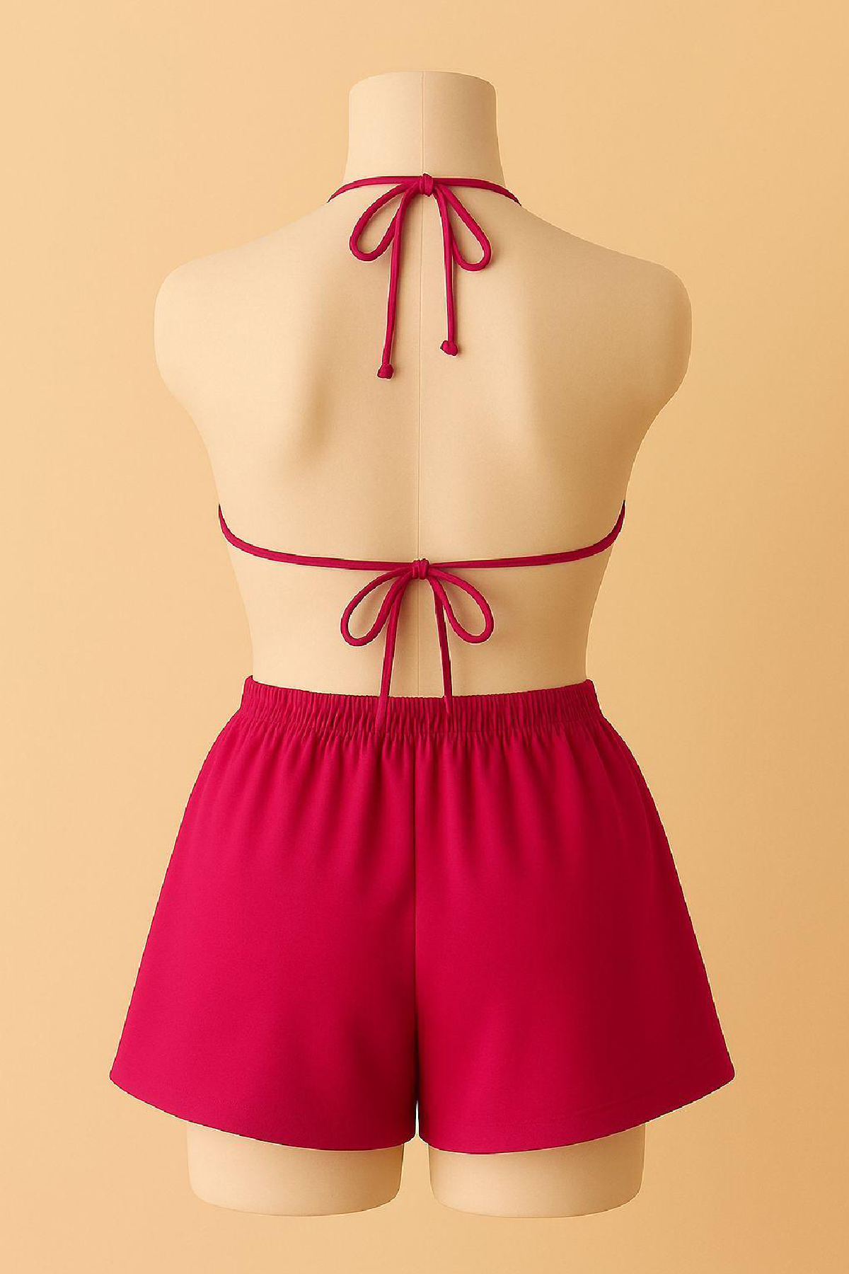 Kadın Fuşya Şortlu Belden ve Boyundan Bağlamalı Bikini Takımı