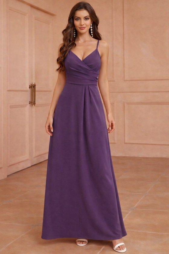 Kadın Ip Askılı Kruvaze Yakalı Yırtmaçlı Uzun Ithal Krep Elbise