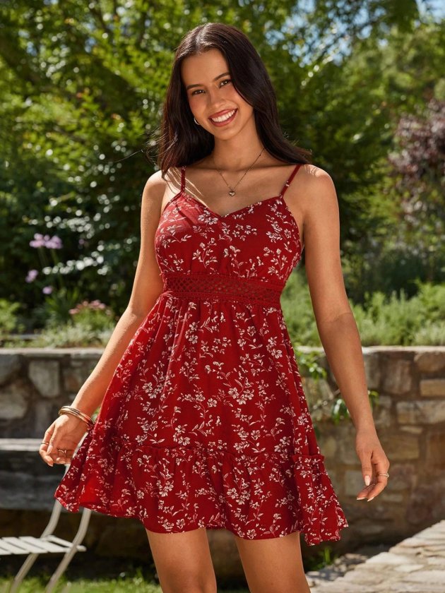 Desenli Kadın Zarif Duruş Ip Askılı V Yakalı Kısa Süprem Elbise
