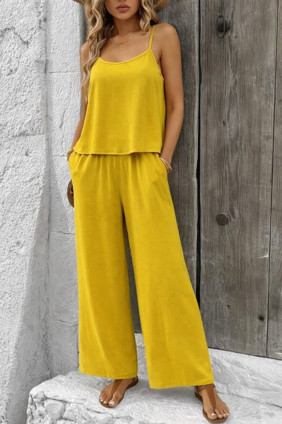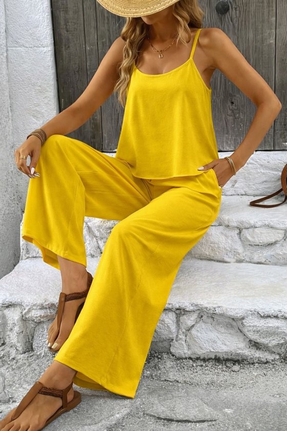 Kadın Ip Askılı Yuvarlak Yakalı Aerobin Kısa Bluz Ve Pantolon Ikili Takım