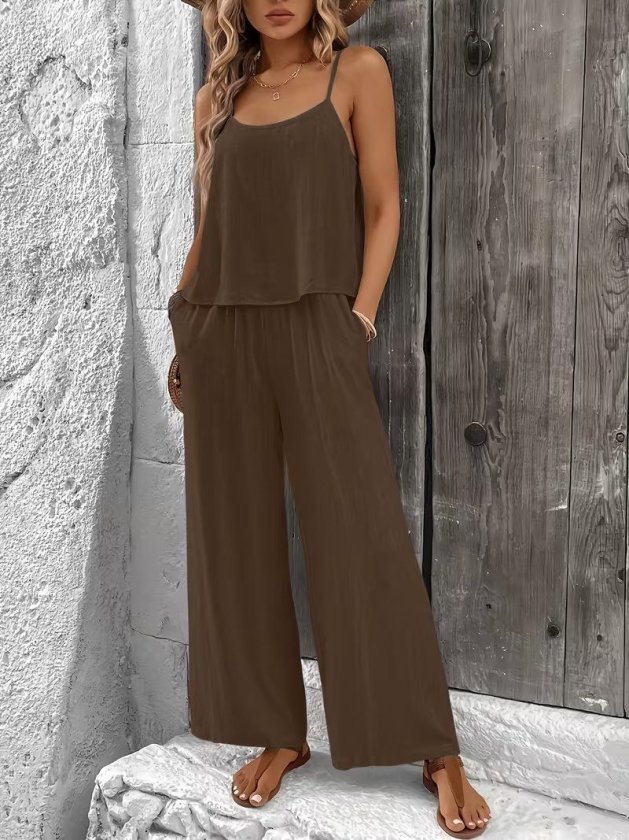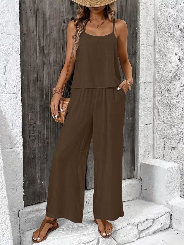Kadın Ip Askılı Yuvarlak Yakalı Aerobin Kısa Bluz Ve Pantolon Ikili Takım