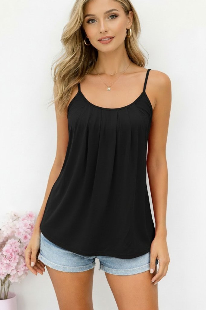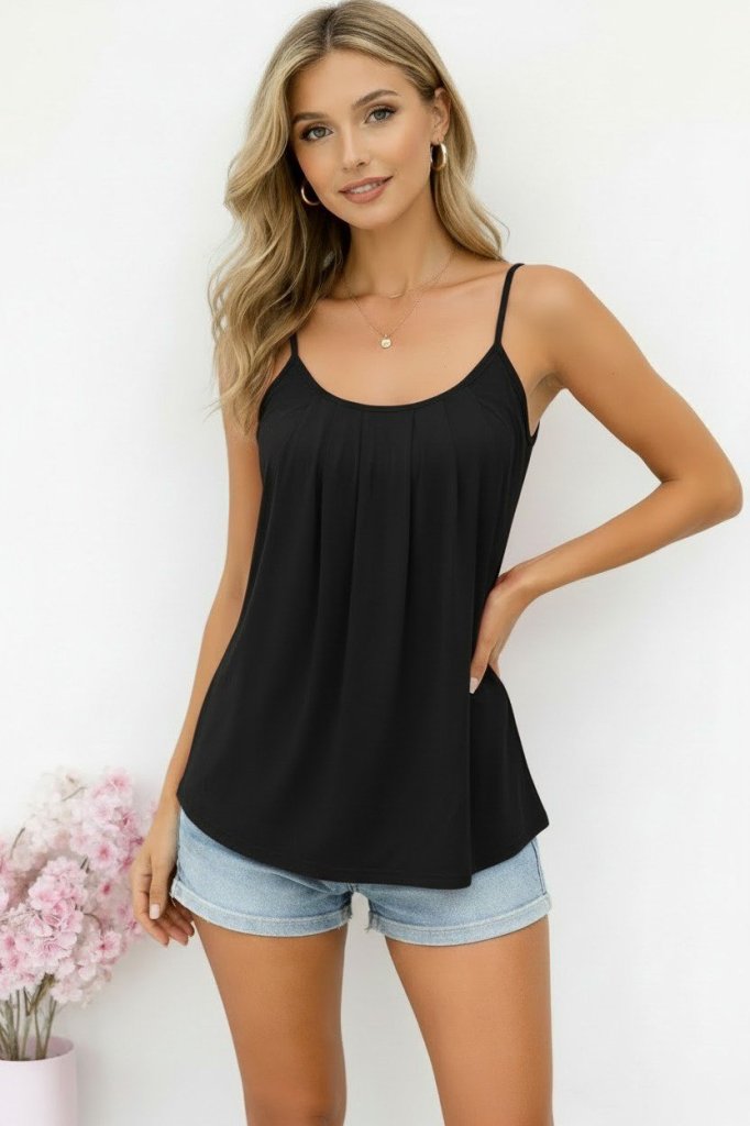 Kadın Ip Askılı Yuvarlak Yakalı Pileli Uzun Viskon Bluz
