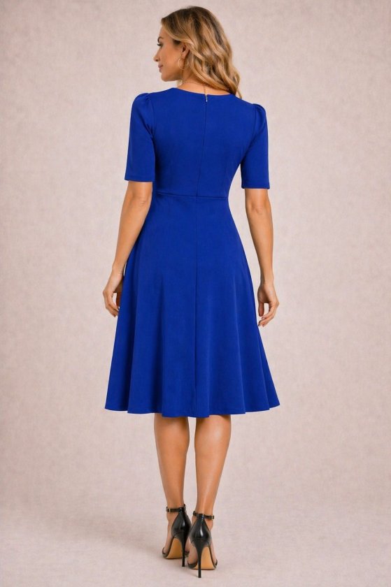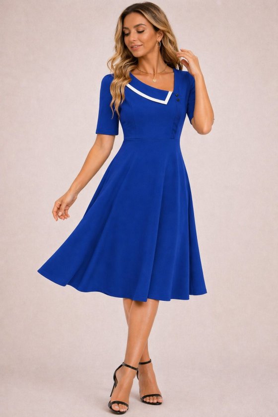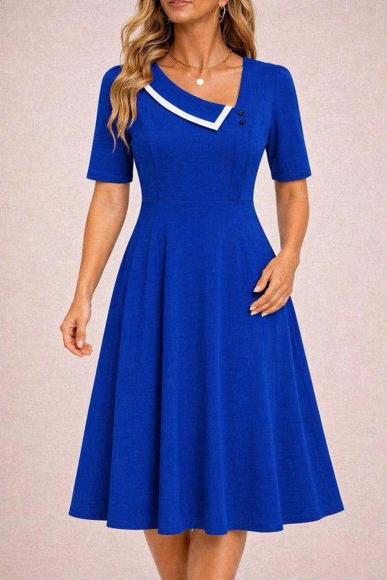 Kadın Kısa Kollu Asimetrik Yaka Detaylı Midi Janjan Krep Elbise