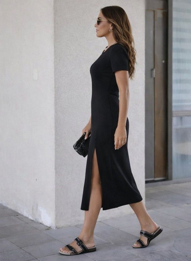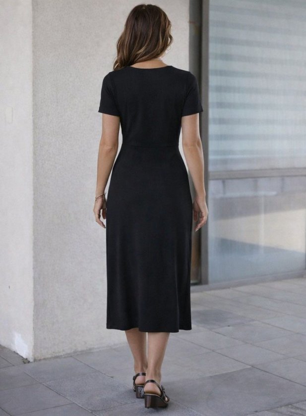 “Kadın Kısa Kollu Bisiklet Yaka Yandan Yırtmaçlı Midi Viskon Elbise” için ilk yorum yapan siz olun
