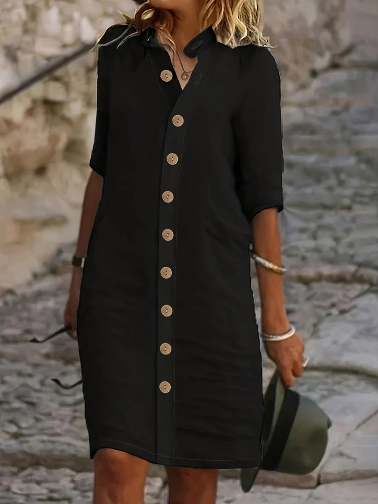 Kadın Zarif Duruş Kısa Kollu Hakim Yaka önden Düğmeli Kısa Müslim Elbise