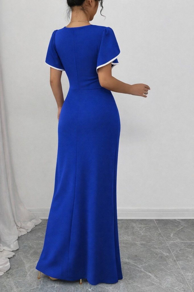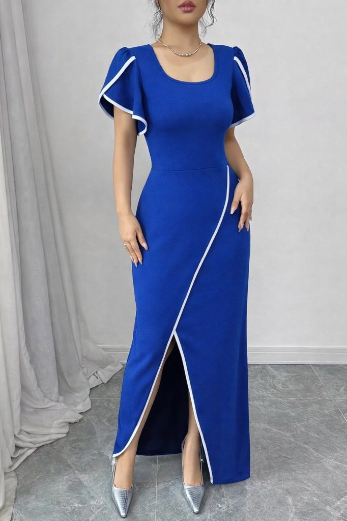 Kadın Kısa Kollu Kare Yakalı önden çapraz Kesim Detaylı Krep Elbise