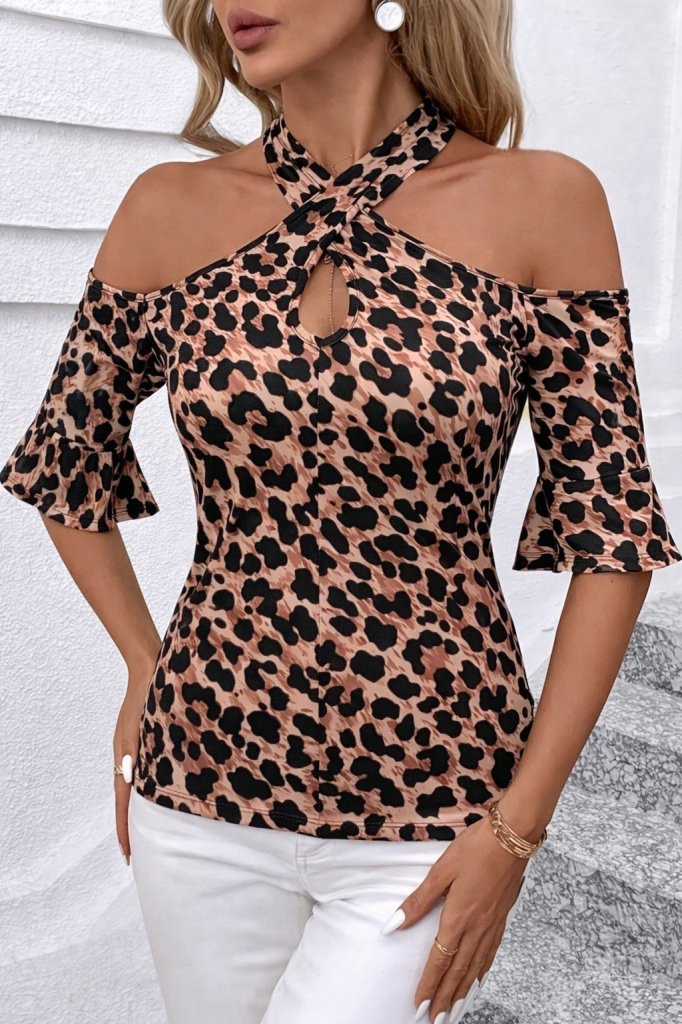 Kadın Kısa Kollu Omuzlardan Açık ön çapraz Detaylı Süprem Bluz