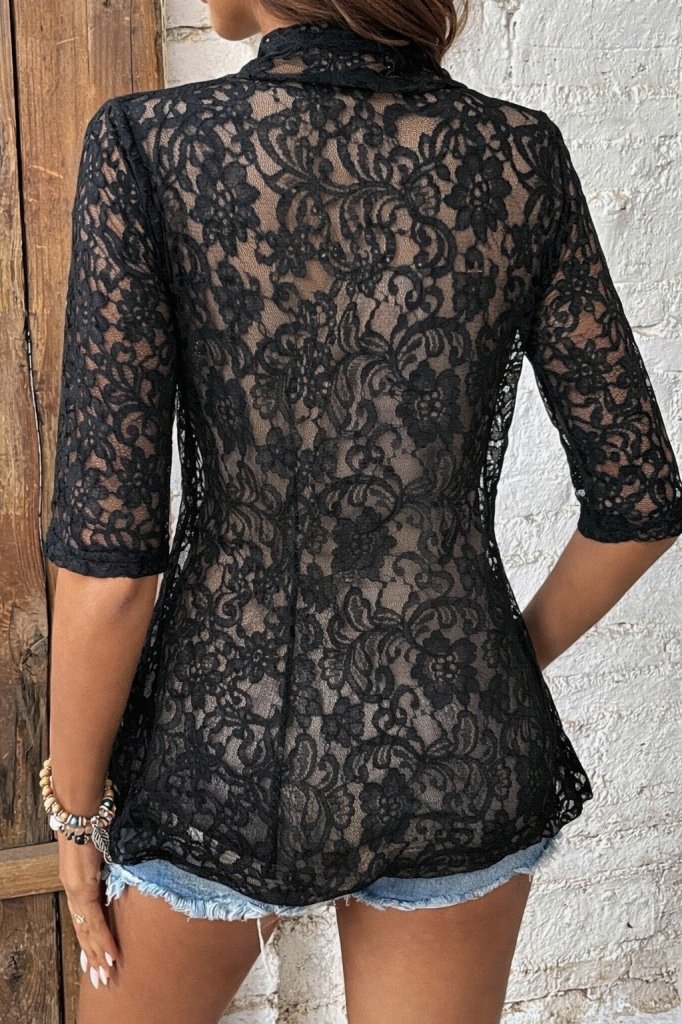 Kadın Şehir Stili Kısa Kollu önü Açık Dantelli Ceket