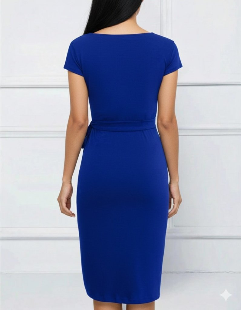 Kadın Kısa Kollu V Asimetrik Yaka Kesimli Yandan Bağlamalı Mini Janjan Krep Elbise