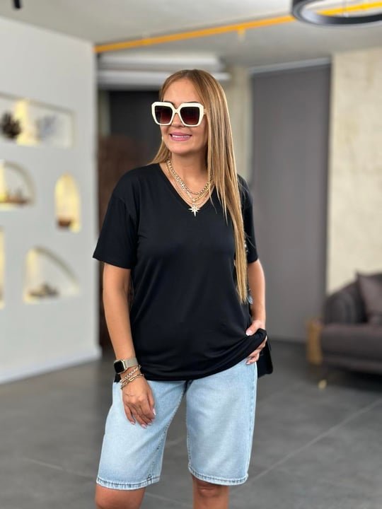 Kadın Zarif Dokunuş Kısa Kollu V Yaka Bluz