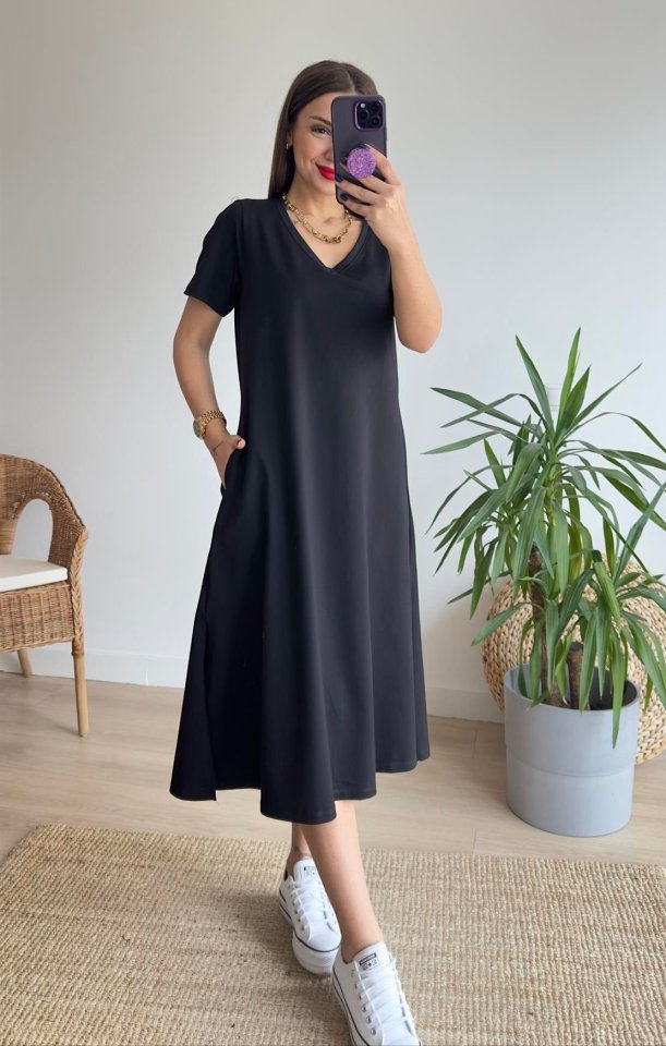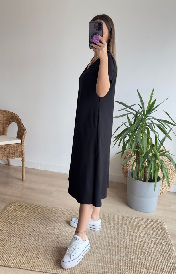 “Viskon Kadın Zarif Duruş Kısa Kollu V Yaka Cepli A Kesim Detaylı Elbise” için ilk yorum yapan siz olun