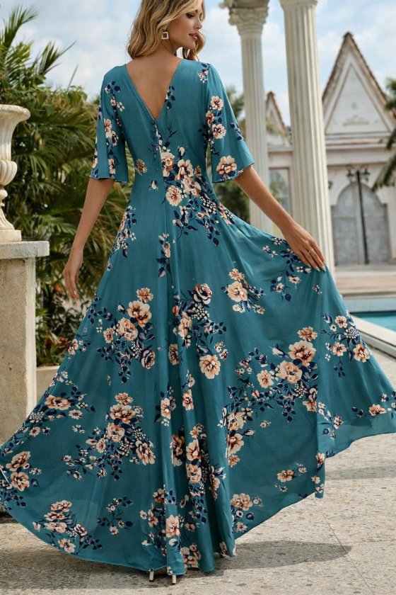 Kadın Kısa Kollu V Yakalı Desenli Süprem Elbise