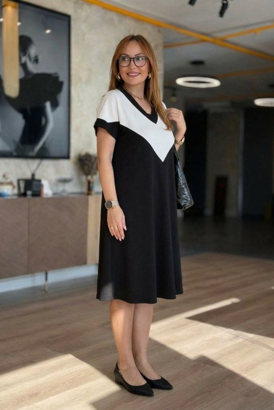 Kadın Kısa Kollu V Yakalı Kısa Modal Elbise