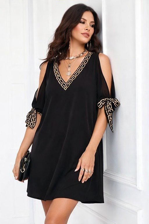 Kadın Kısa Kollu V Yakalı Kısa Sandy Elbise