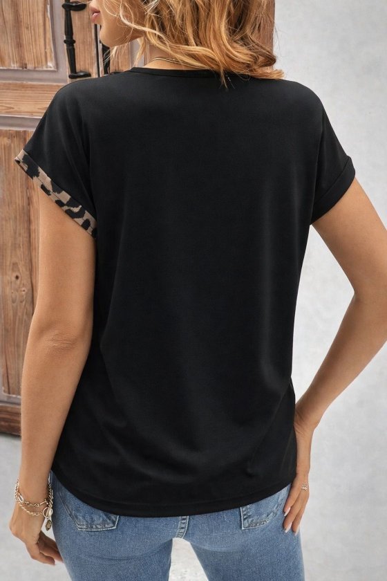 Kadın Kısa Kollu V Yakalı önden Düğmeli Leopar Desen Detaylı Viskon Bluz