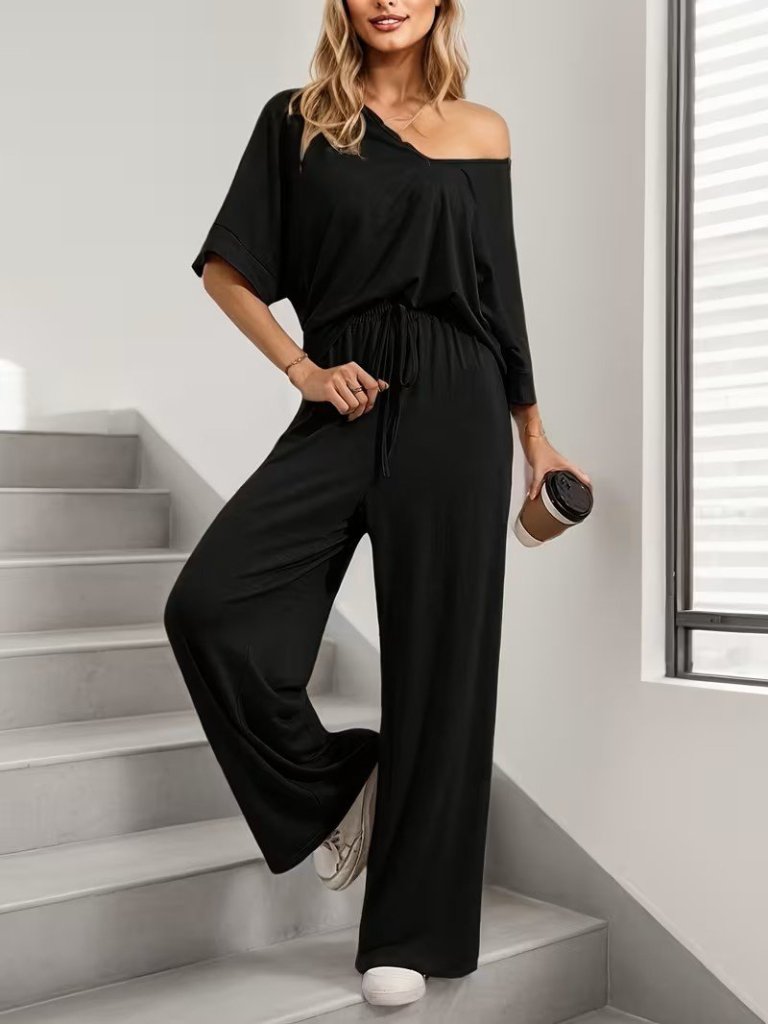 Kadın Kısa Kollu V Yakalı Viskon Bluz Ve Pantolon Ikili Takım