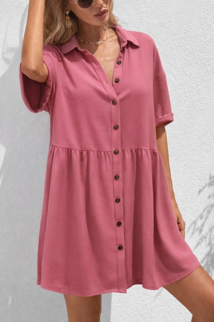 Kadın Zarif Duruş Kısa Kollu Yakalı önden Düğmeli Kısa Bürümcük Elbise