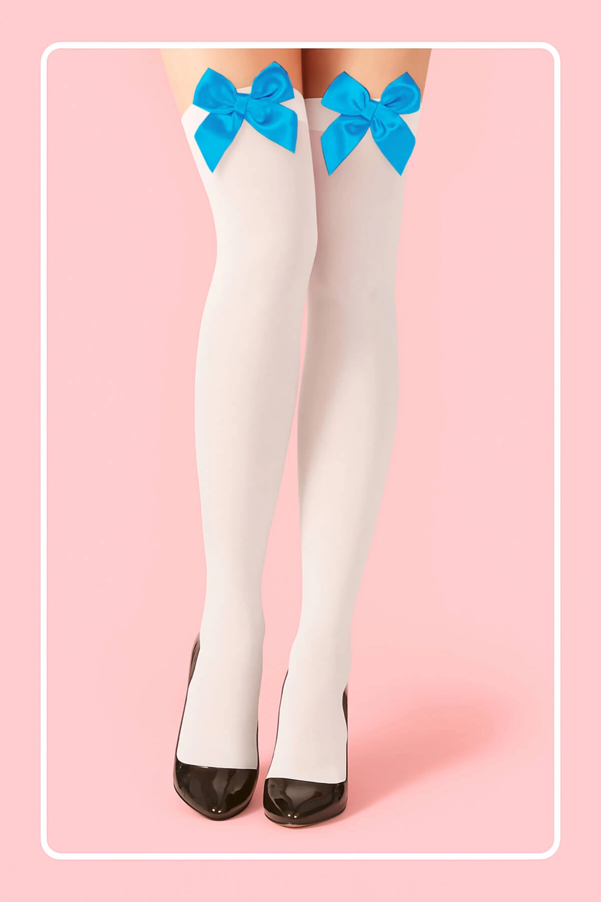 Kadın Modern Stil Mavi Fiyonklu Beyaz Jartiyer Çorabı TM1381