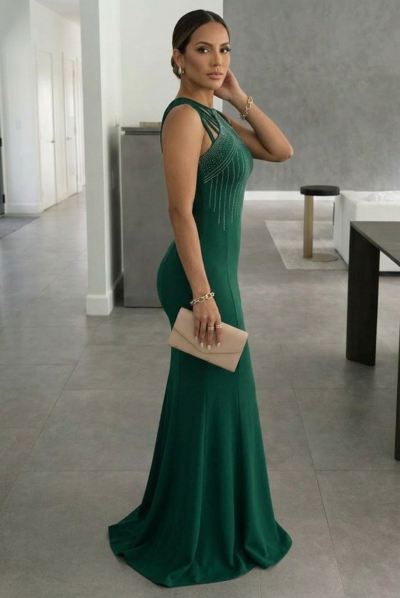 Kadın Omuz çoklu Askılı önü Taş Işlemeli Balık Kesim Janjan Krep Maxi Boy Elbise