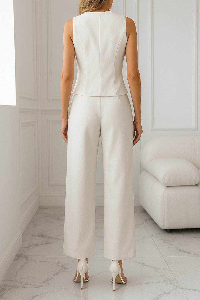 Kadın Sıfır Kollu çapraz V Yakalı önden Düğmeli Atlas Yelek Ve Pantolon Ikili Takım