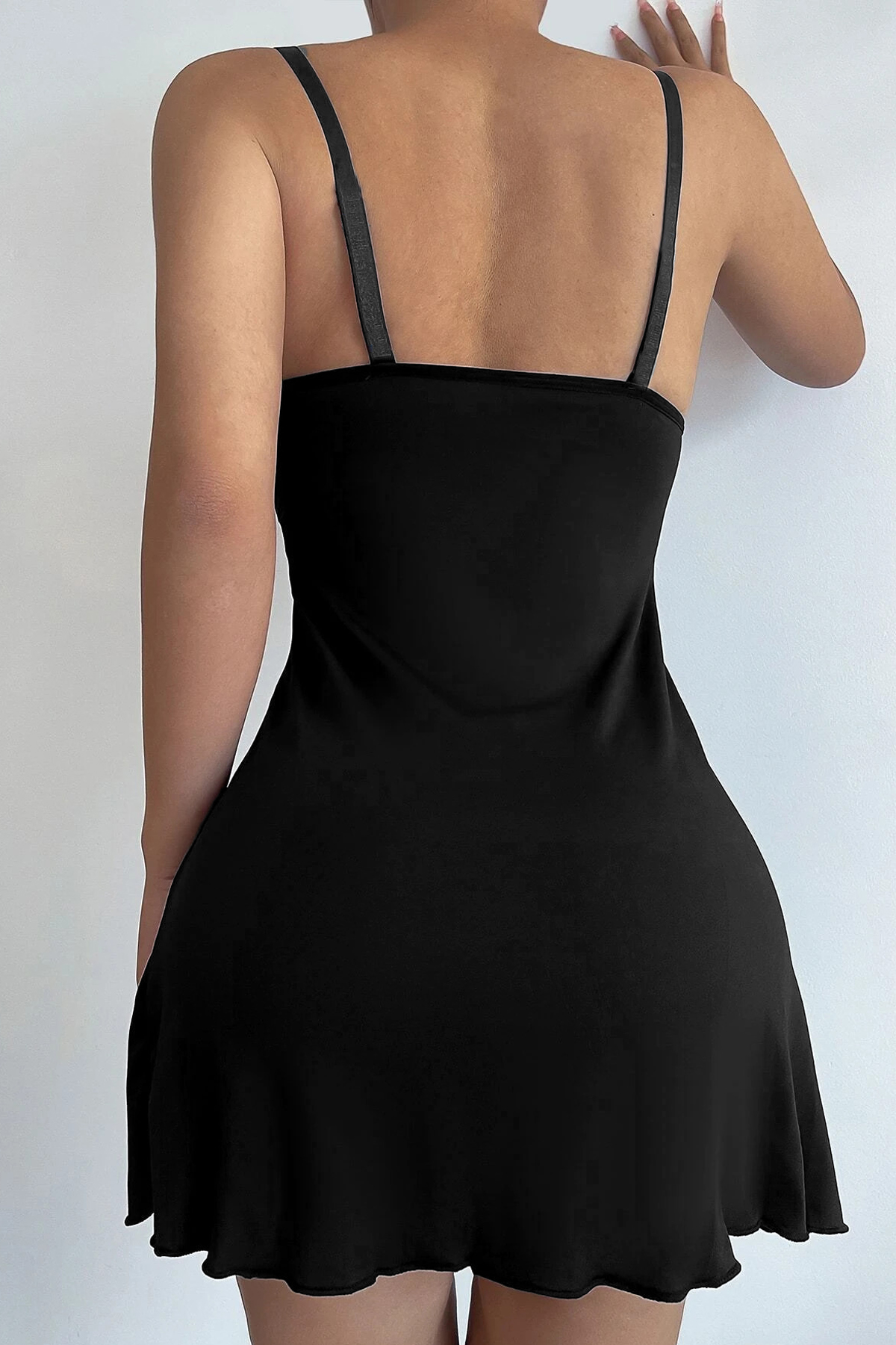 Kadın Rahat Duruş Siyah Askılı Beli Dantelli Göğsü Fiyonklu Şık Gecelik