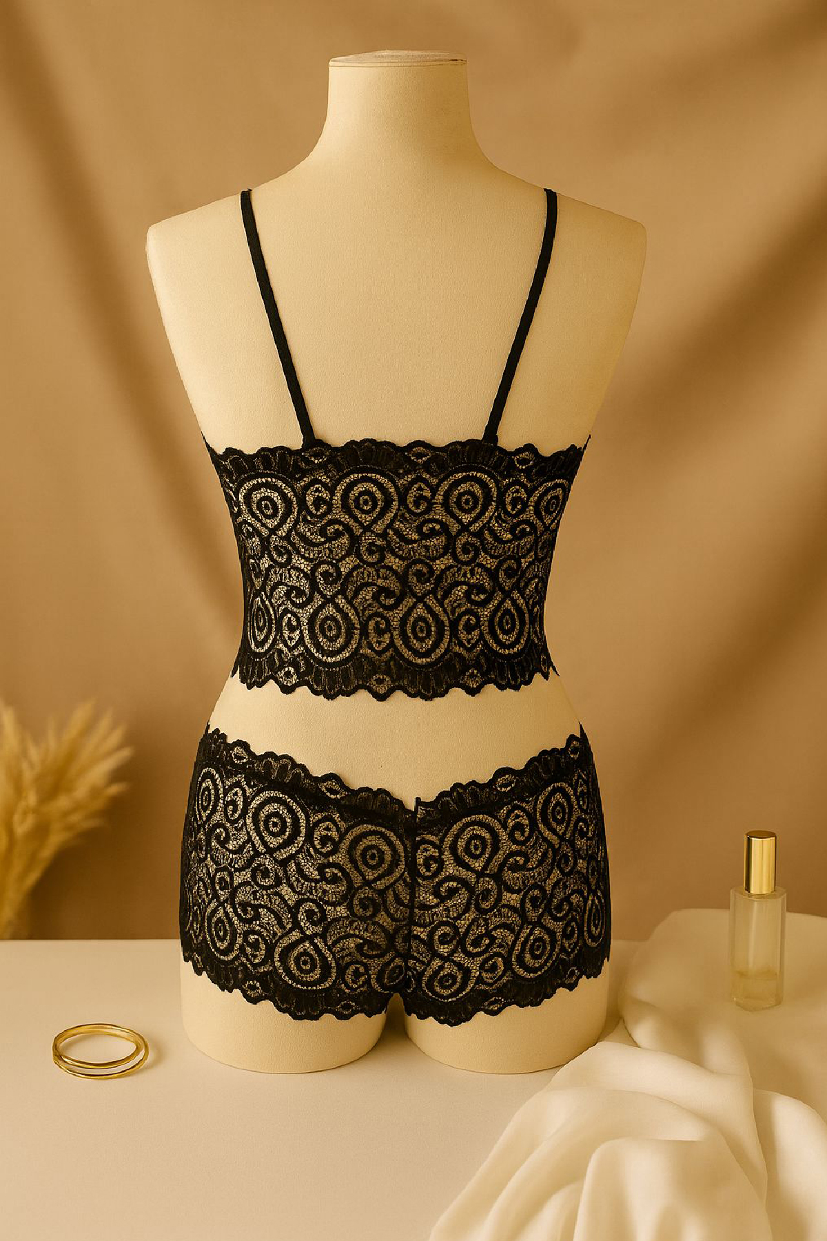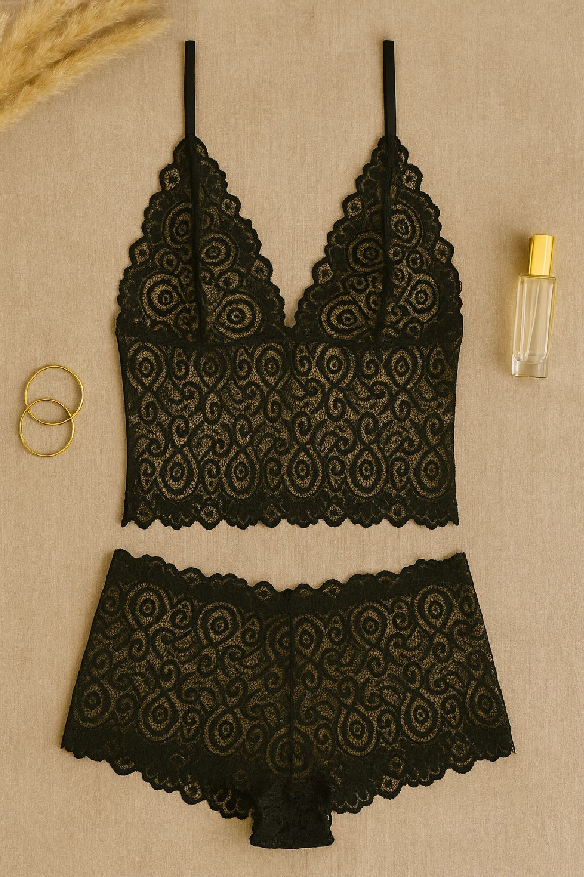 Kadın Siyah Dantel Bralet ı – Şık, Zarif ve Feminen İç Giyim Şort Takım