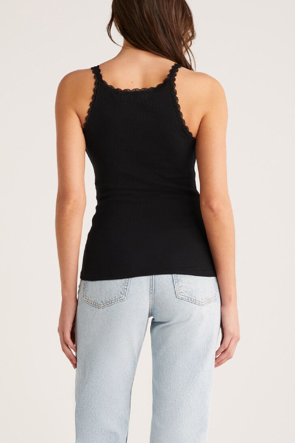 Kadın Siyah Normal Kalıp Dantel Detalı Ince Askılı Oyuk Yaka Atlet