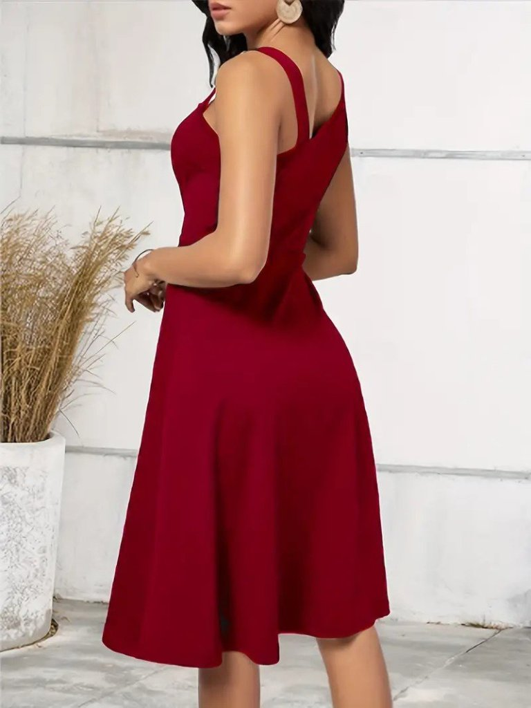 Kadın Tek Omuzu şerit Detaylı Kolsuz Yandan Düğme Detaylı Viskon Elbise