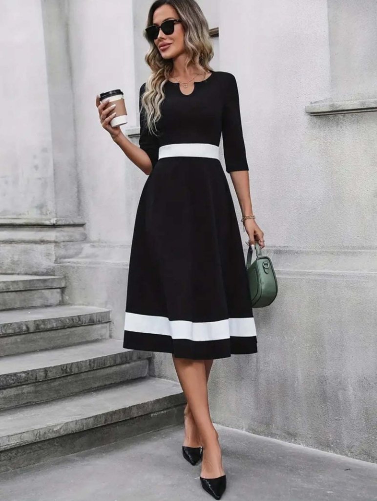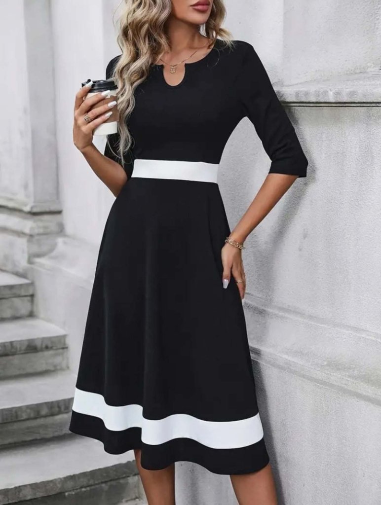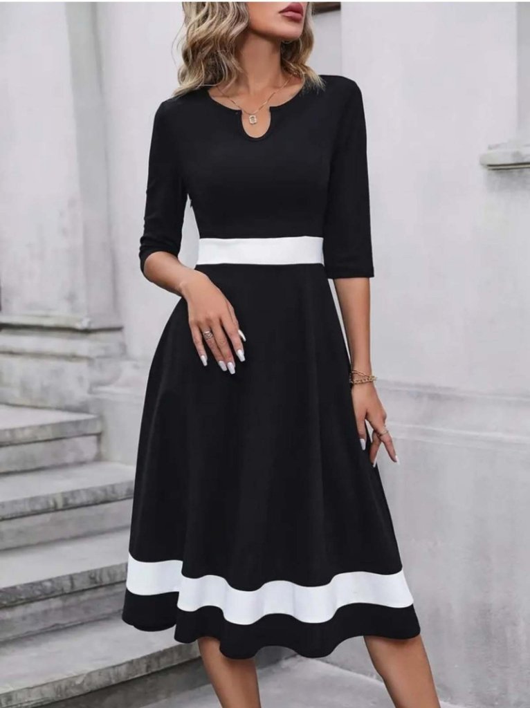 Janjan Krep Kadın Zarif Duruş Truvakar Kol V Yakalı Midi Elbise