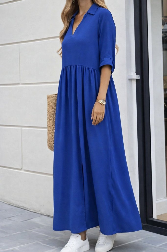 Aerobin Kadın Zarif Duruş Truvakar Kollu V Yakalı Yırtmaçlı Uzun Elbise