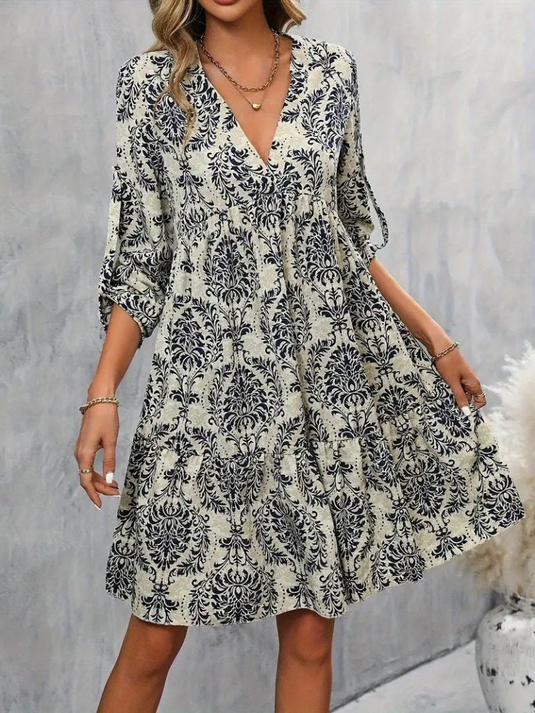 Süprem Kadın Zarif Duruş Uzun Kollu V Yakalı Fırfırlı Mini Elbise