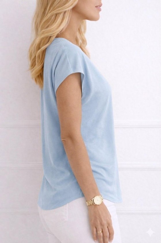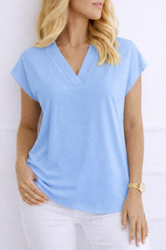 Kadın V Yaka Kısa Kol Dokuma Viskon Kumaş Bluz