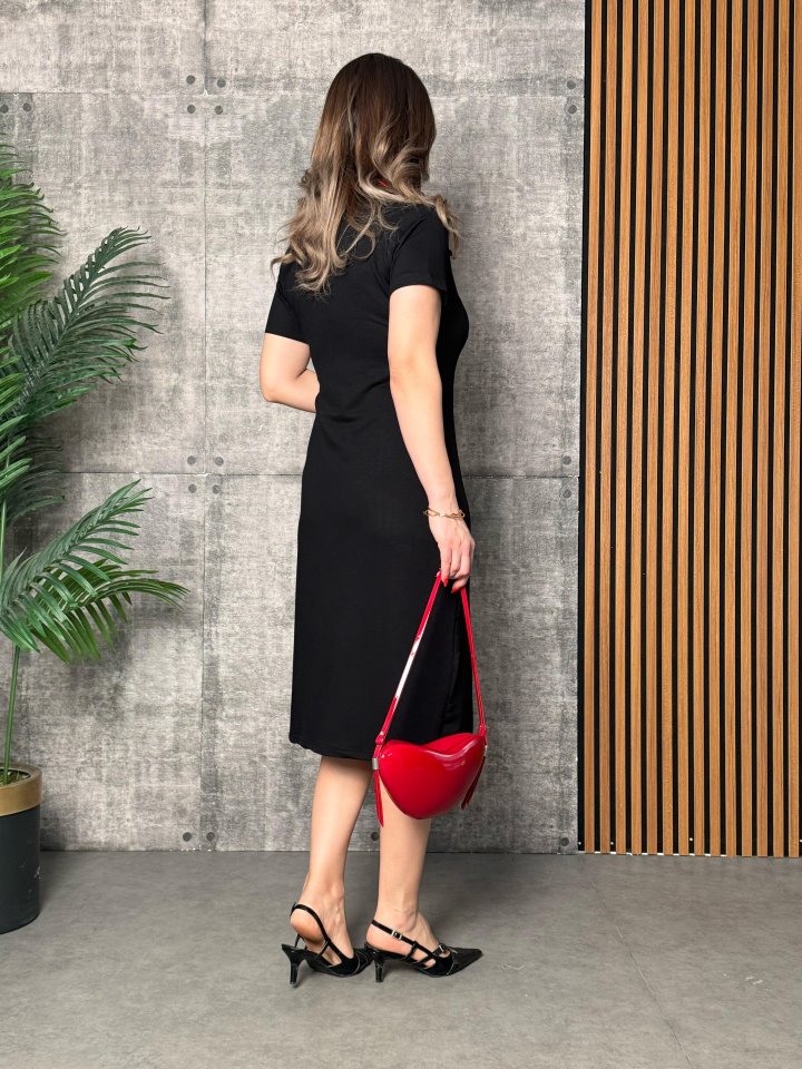 Kadın Yaka Ribanalı Çift Yırtmaçlı Elbise