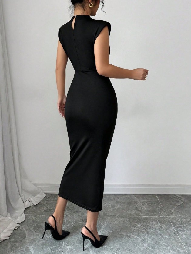 Kadın Yarı Balıkçı Yaka Kısa Kollu çicek Aksesuar Detaylı Midi Dalgıç Elbise