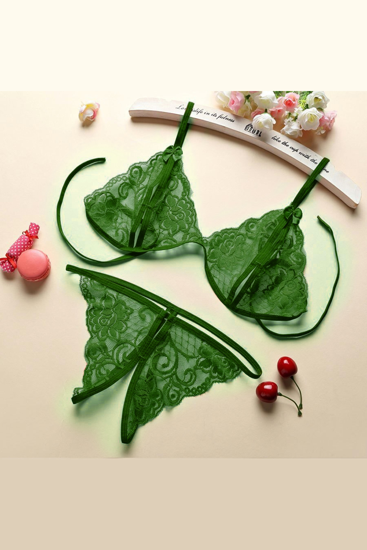Kadın Yeşil Dantelli Sütyen Külot Takımı