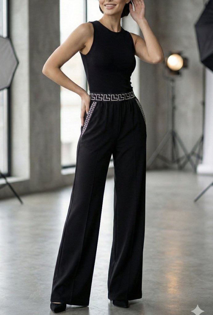 Kadın Yüksek Bel Beli Lastikli Genç Paçalı Ithal Krep Pantolon