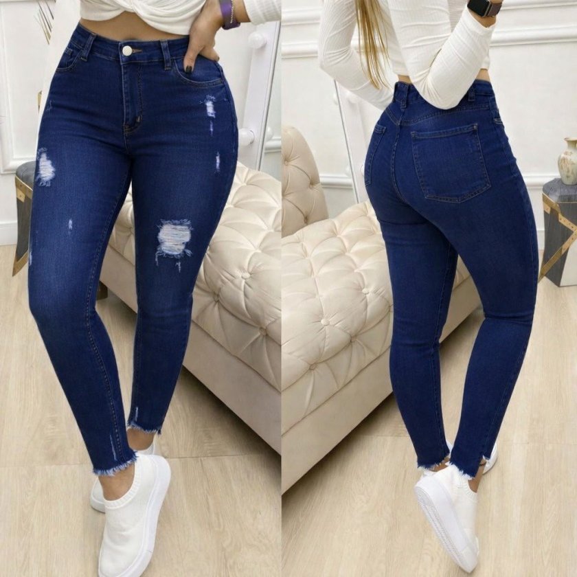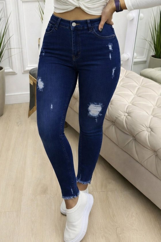 Kadın Yüksek Bel Yırtık Desenli Skınny Kot Pantolon