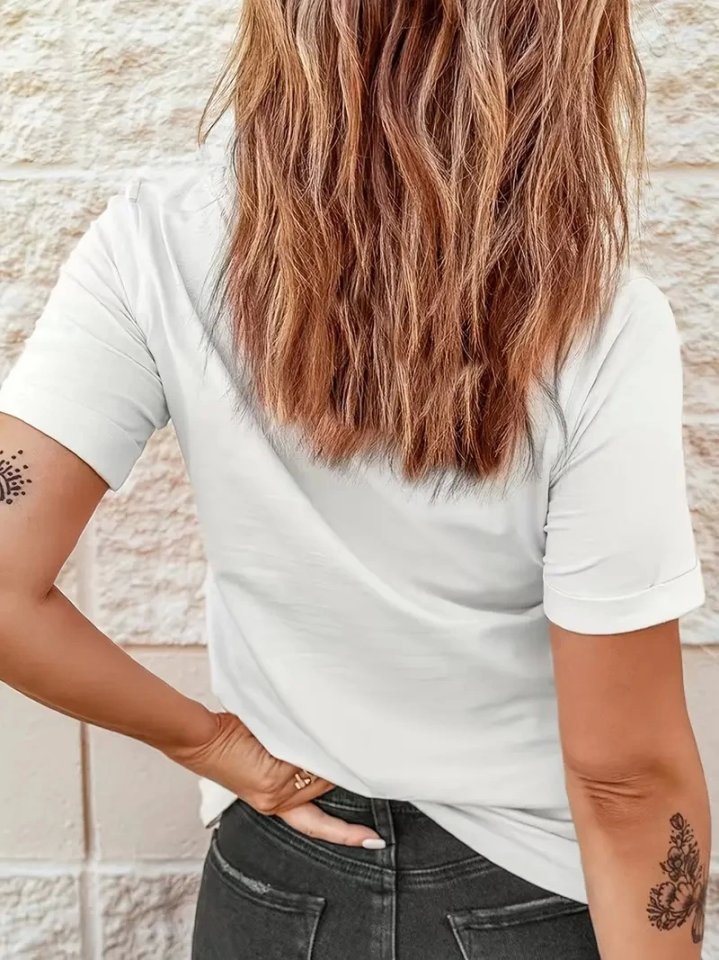Kadınlar Için Şık Leopar Kalp Baskılı Günlük Tişört – Büyük Beden, Makinede Yıkanabilir, Sevgililer Günü – Günlük Kıyafetler Için Mükemmel- Beyaz