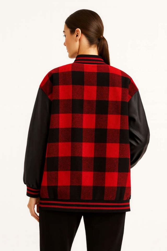 Suni Deri Kadın Bordo Kolları İçi Astarlı Oduncu Kolej İçi Ceket