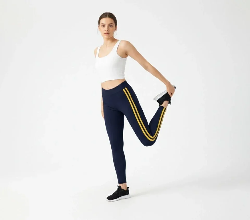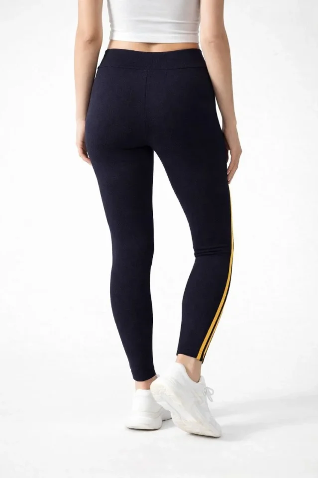 Likralı Yan Sarı Şeritli Detaylı Tayt – Siyah